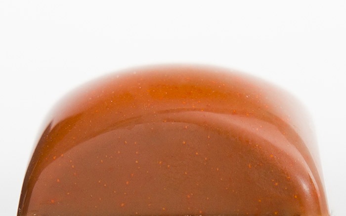 Bombón de chocolate con leche e interior de chocolate con leche, naranja i crema.